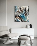 Der kan bestilles en ramme til maleriet. De fleste vælger sølv eller sort. Du kan også hænge maleriet op uden ramme. Alle malerier er klar til ophængning med metalsnor på bagsiden.
