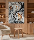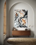 Der kan bestilles en ramme til maleriet. De fleste vælger sølv eller sort. Du kan også hænge maleriet op uden ramme. Alle malerier er klar til ophængning med metalsnor på bagsiden.