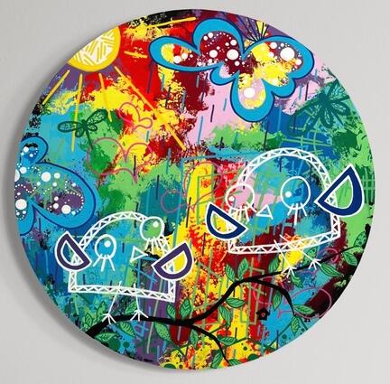Skønt uglemaleri fyldt med liv og farver.
